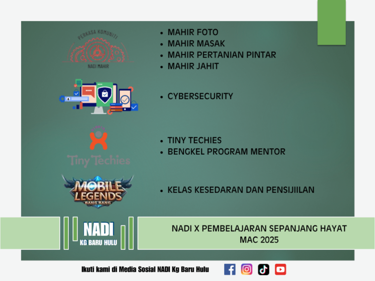 NADI X MAHIR PERTANIAN PINTAR NADI X MAHIR JAHIT NADI X MAHIR FOTO NADI X CYBERSECURITY NADI X TINY TECHIES